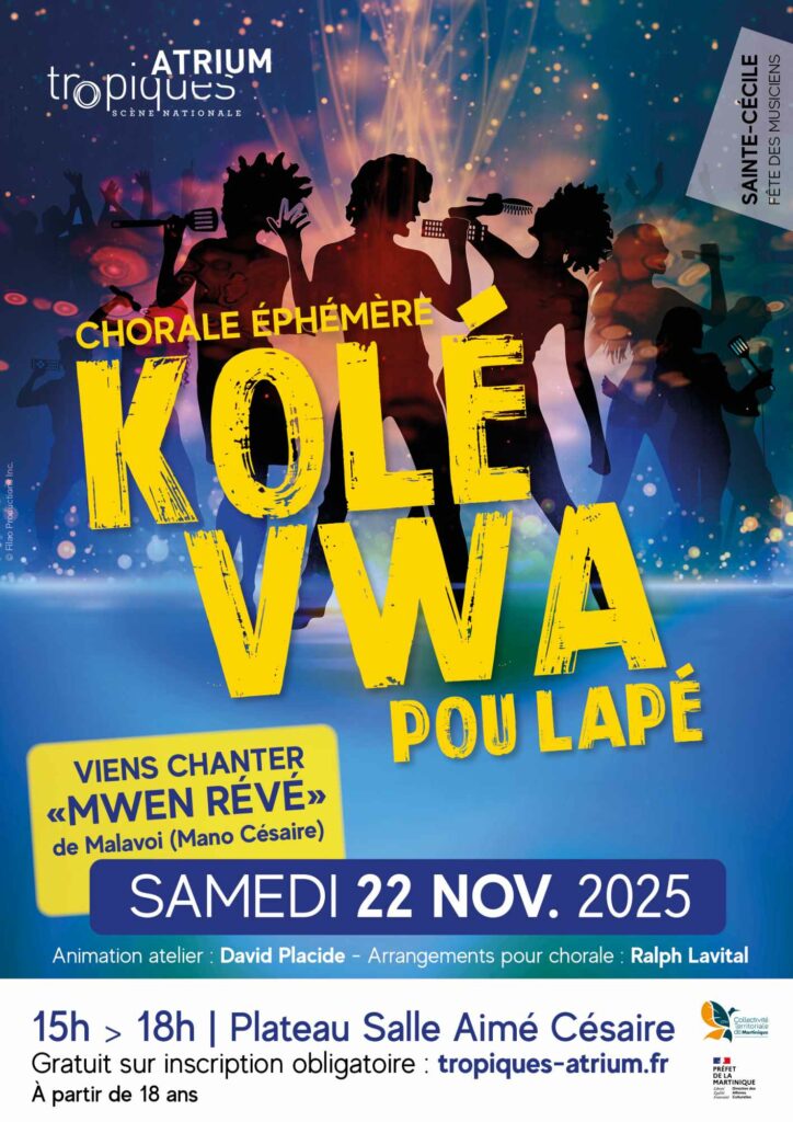 Tu aimes chanter sous la douche, dans ta voiture ou avec tes amis ? Viens découvrir et participer à une expérience collective, le 22 juin de 15h à 18h : la chorale éphémère KOLÉ VWA pou lapé !