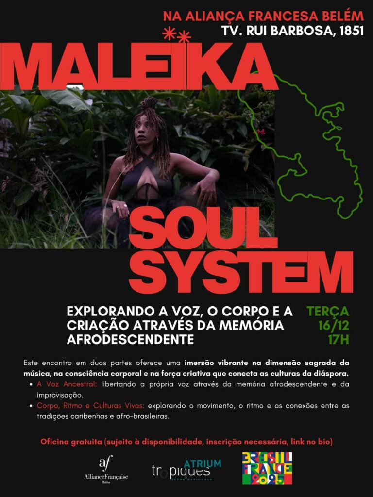 Le 14 décembre, la chanteuse et compositrice Maleïka, accompagnée de Ismaël Nobour (batterie) et Yannick Comsel (claviers), fera découvrir son projet Soul System, fusion entre traditions et modernité, créant une nouvelle identité musicale créolisée.