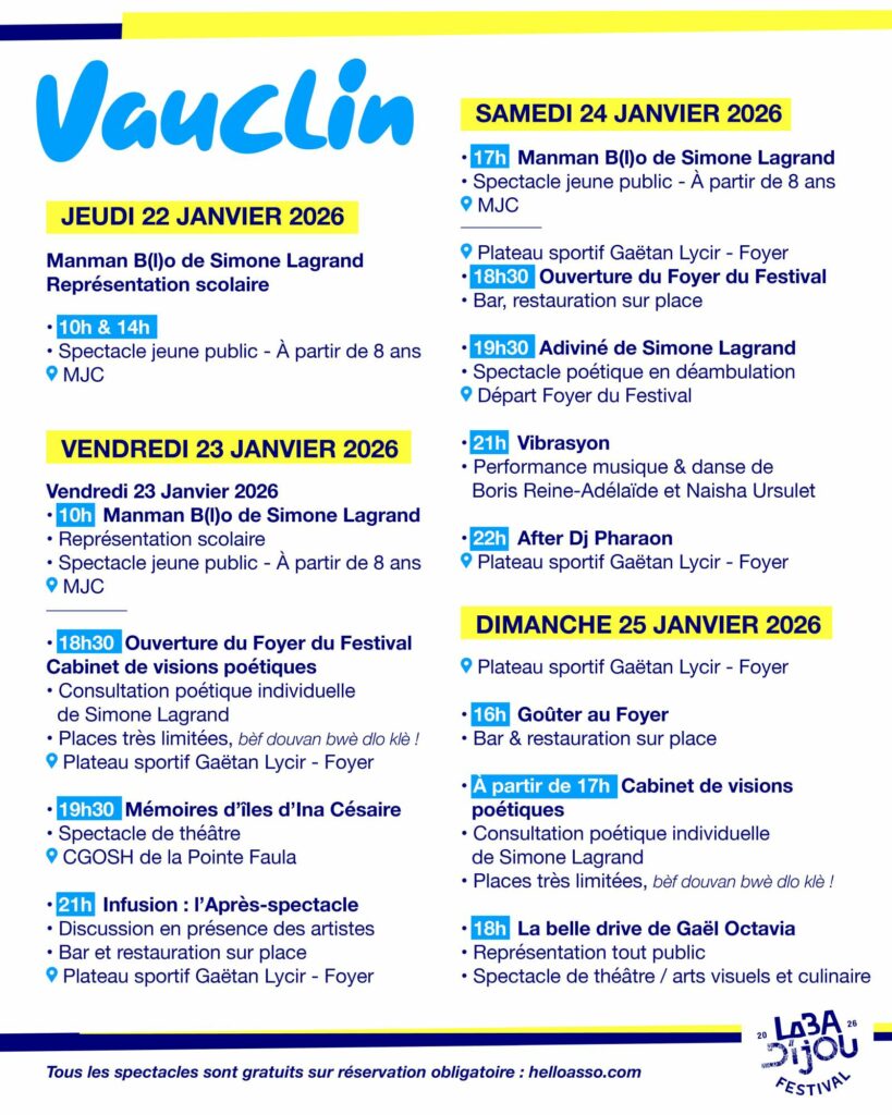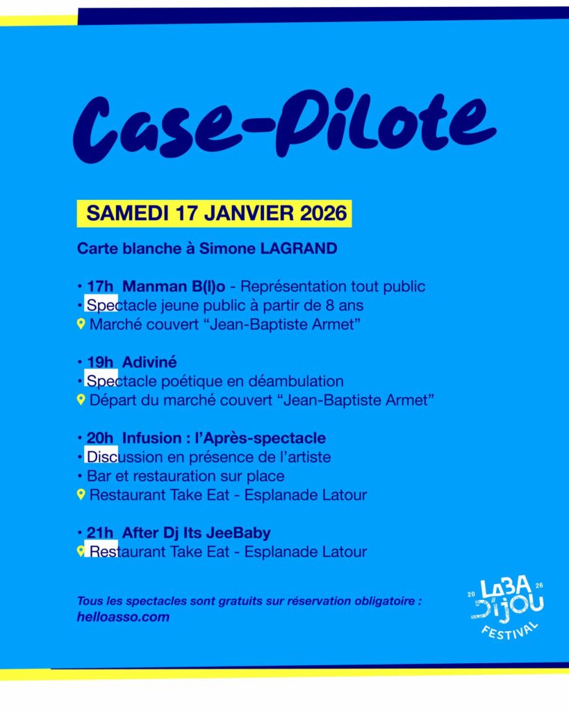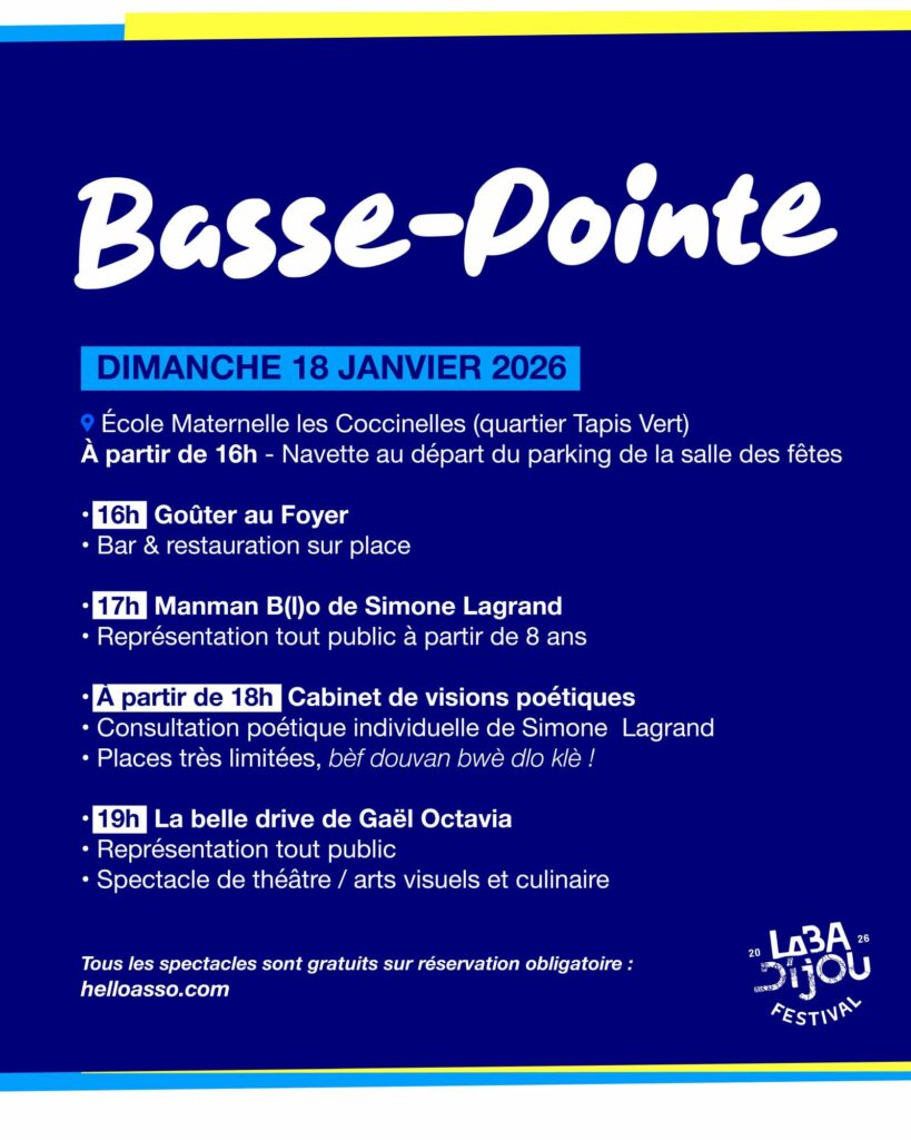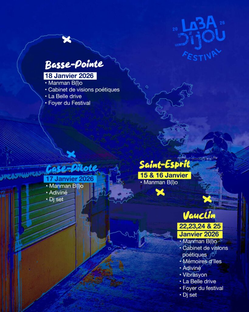 Avec le soutien de la DAC Martinique, Tropiques Atrium Scène Nationale, le Centre Culturel de Rencontre Les Coulisses, la ville du Saint-Esprit, la ville de Basse-Pointe, la ville de Case-Pilote et RCI