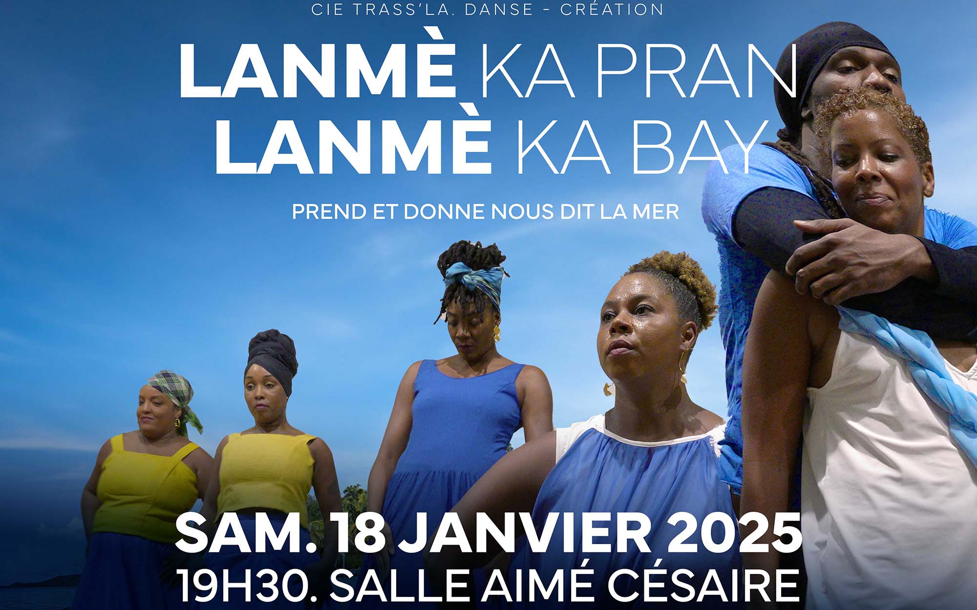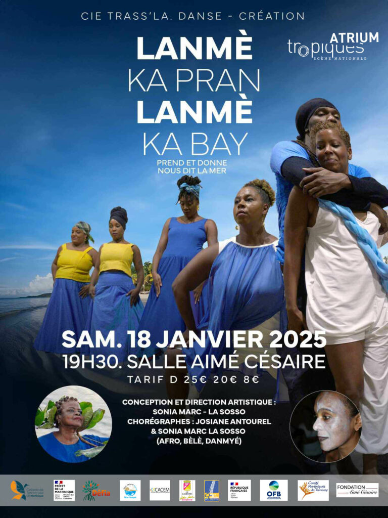 Lanmè ka pran Lanmè ka bay est une œuvre qui mêle Danse, Musique, Images, Jeux Mémoriaux, Patrimoine, les malheurs et les grandes joies, fusionnés dans les flots marins.